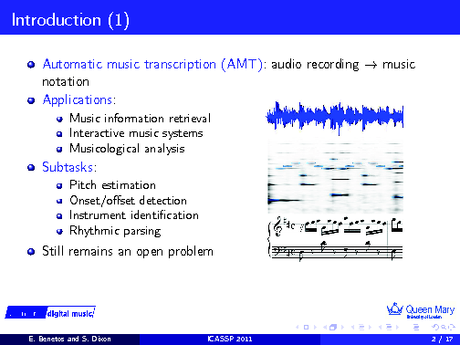 Přednášející: Emmanouil Benetos, Autoři: Emmanouil Benetos, Simon Dixon, Queen Mary University of London, United Kingdom