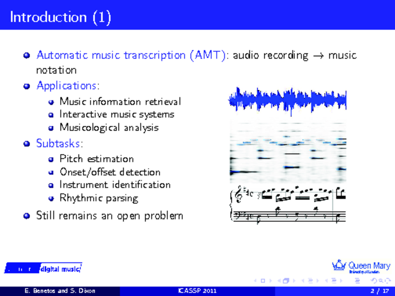 Presented by: Emmanouil Benetos, Author(s): Emmanouil Benetos, Simon Dixon, Queen Mary University of London, United Kingdom