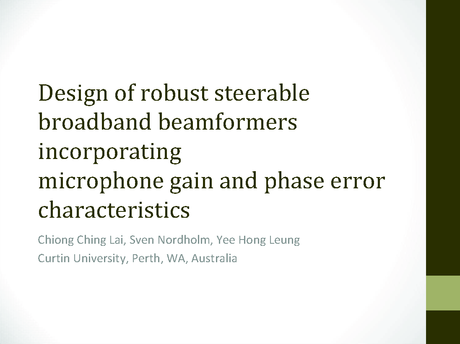 Presented by: Chiong Ching Lai, Author(s): Chiong Ching Lai, Sven Nordholm, Yee Hong Leung, Curtin University, Australia