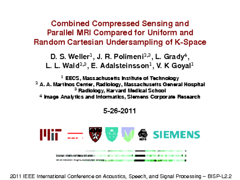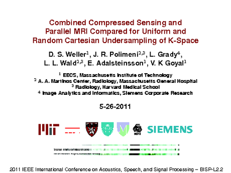 Presented by: Daniel S. Weller, Author(s): Daniel S. Weller, Massachusetts Institute of Technology, United States; Jonathan R. Polimeni, Massachusetts General Hospital, United States; Leo Grady, Siemens Corporate Research, United States; Lawrence L. Wald, Massachusetts General Hospital, United States; Elfar Adalsteinsson, Vivek K. Goyal, Massachusetts Institute of Technology, United States