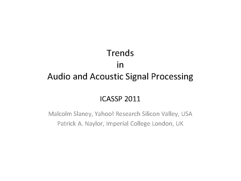 Přednášející: Walter Kellermann, Malcolm G. Slaney, Patrick A. Naylor, Autoři: Walter Kellermann, Malcolm G. Slaney, Patrick A. Naylor