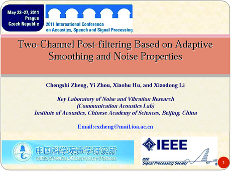 Presented by: Chengshi Zheng, Author(s): Chengshi Zheng, Yi Zhou, Xiaohu Hu, Xiaodong Li, Institute of Acoustics Chinese Academy of Sciences, China