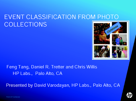 Přednášející: David Varodayan, Autoři: Feng Tang, Daniel R. Tretter, Chris Willis, Hewlett-Packard Laboratories, United States