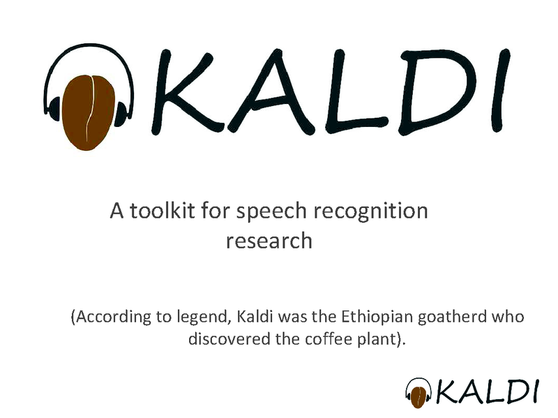 This talk introduces the Kaldi speech recognition toolkit: a new speech recognition toolkit written in C++ that uses FSTs for training and testing. It uses the OpenFst library and links against BLAS and LAPACK for linear algebra support. The aim is to create a clean, flexible and well-structured toolkit for speech recognition researchers.