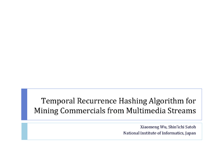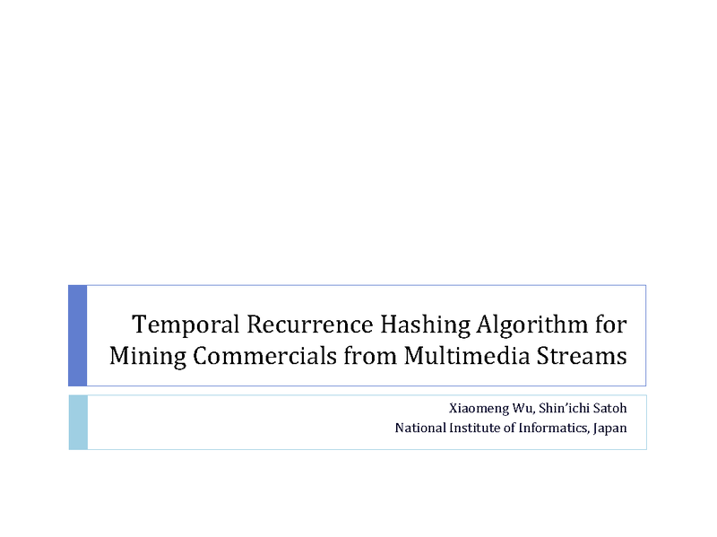 TEMPORAL RECURRENCE HASHING ALGORITHM FOR MINING COMMERCIALS FROM MULTIMEDIA STREAMS