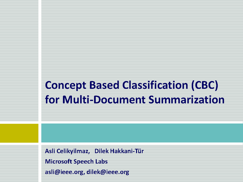 CONCEPT-BASED CLASSIFICATION FOR MULTI-DOCUMENT SUMMARIZATION
