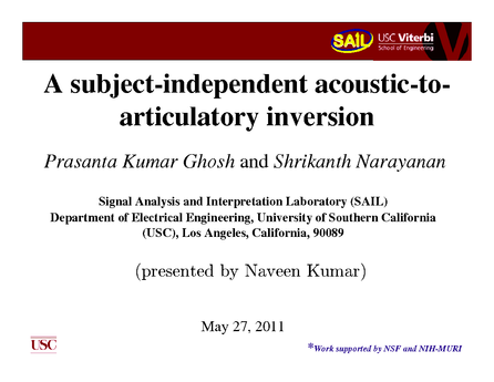 Přednášející: Komath Naveen Kumar, Autoři: Prasanta Ghosh, Shrikanth S. Narayanan, University of Southern California, United States