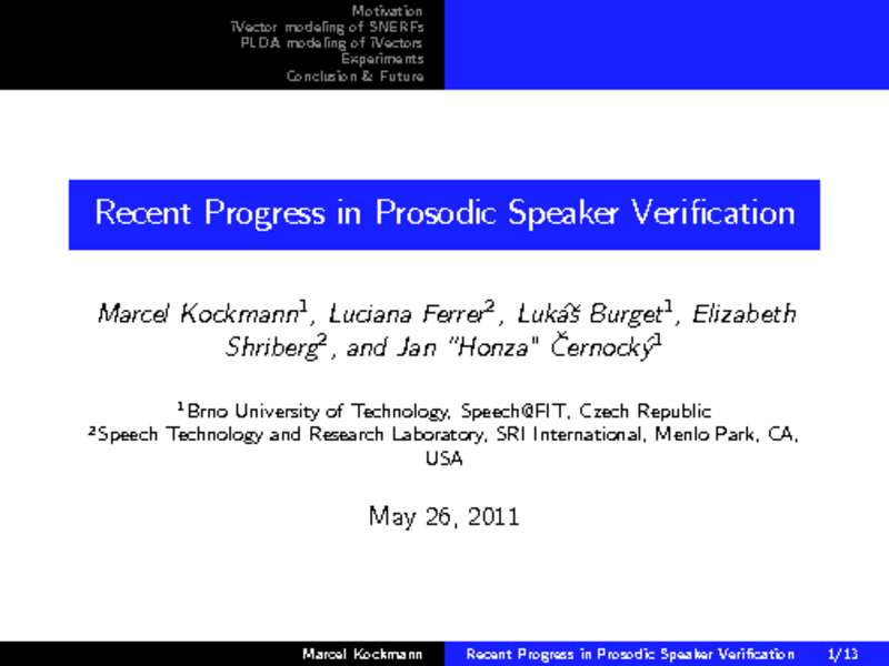 Přednášející: Marcel Kockmann, Autoři: Marcel Kockmann, Brno University of Technology, Czech Republic; Luciana Ferrer, SRI International, United States; Lukas Burget, Brno University of Technology, Czech Republic; Elizabeth Shriberg, SRI International, United States; Jan Cernocky, Brno University of Technology, Czech Republic