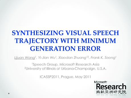 Presented by: Lijuan Wang, Author(s): Lijuan Wang, Microsoft Research Asia, China; Yi-Jian Wu, Microsoft Corporation, China; Xiaodan Zhuang, Beckman Institute / University of Illinois at Urbana-Champaign, China; Frank K. Soong, Microsoft Research Asia, China