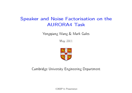 Přednášející: Yongqiang Wang, Autoři: Yongqiang Wang, Mark Gales, University of Cambridge, United Kingdom