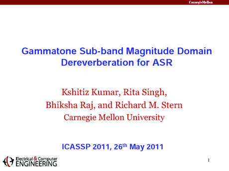 Presented by: Bhiksha Raj, Author(s): Kshitiz Kumar, Rita Singh, Carnegie Mellon University, United States; Bhiksha Raj, Disney Research, United States; Richard Stern, Carnegie Mellon University, United States
