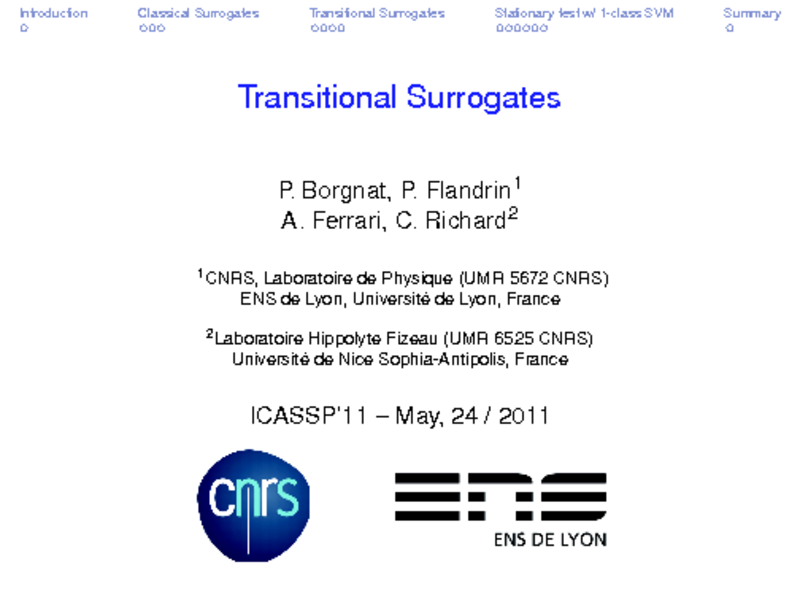 Presented by: Patrick Flandrin, Author(s): Pierre Borgnat, Patrick Flandrin, CNRS - ENS Lyon, France; André Ferrari, Cédric Richard, Université de Nice Sophia-Antipolis, France