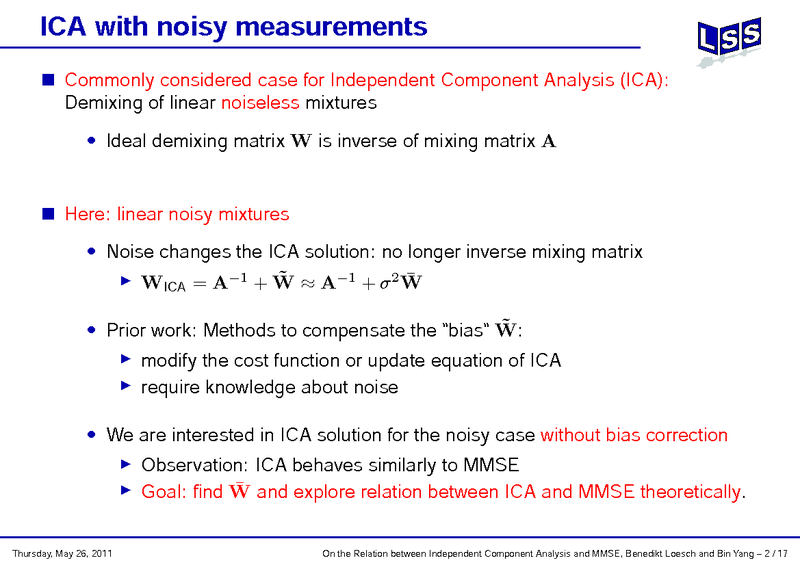 ON THE RELATION BETWEEN ICA AND MMSE BASED SOURCE SEPARATION