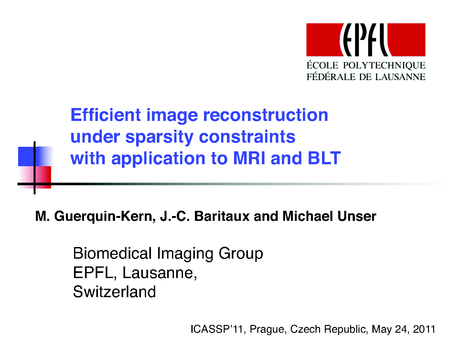 Presented by: Michael Unser, Author(s): Matthieu Guerquin-Kern, Jean-Charles Baritaux, Michael Unser, Ecole Polytechnique Fédérale de Lausanne, Switzerland