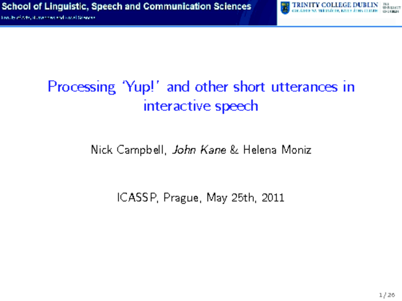 Presented by: John Kane, Author(s): Nick Campbell, John Kane, University of Dublin, Ireland; Helena Moniz, FLUL/INESC-ID, Ireland