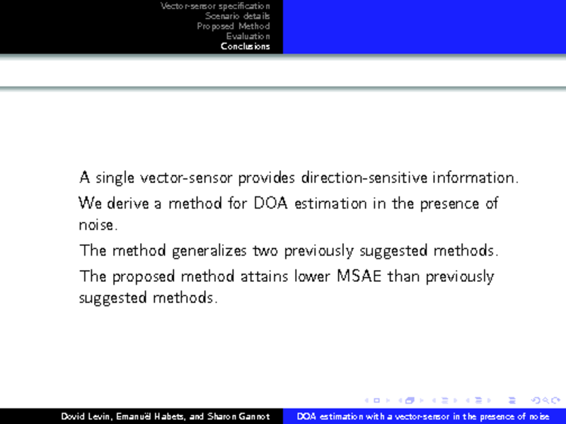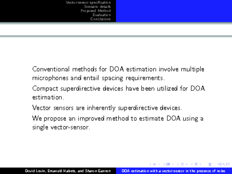 DIRECTION-OF-ARRIVAL ESTIMATION USING ACOUSTIC VECTOR SENSORS IN THE PRESENCE OF NOISE