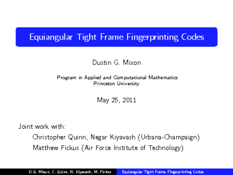 Dustin Mixon, Princeton University, United States; Christopher Quinn, Negar Kiyavash, University of Illinois Urbana-Champaign, United States; Matthew Fickus, Air Force Institute of Technology, United States