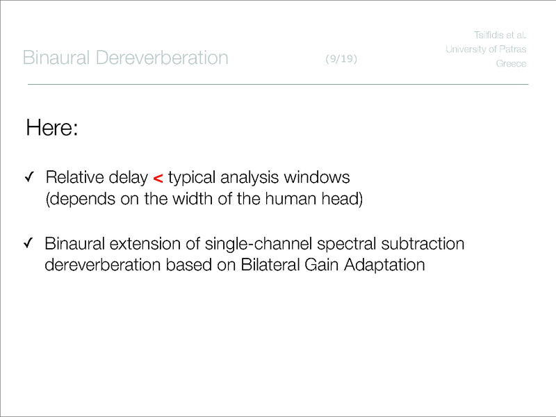 Alexandros Tsilfidis, Eleftheria Georganti, John Mourjopoulos, University of Patras, Greece
