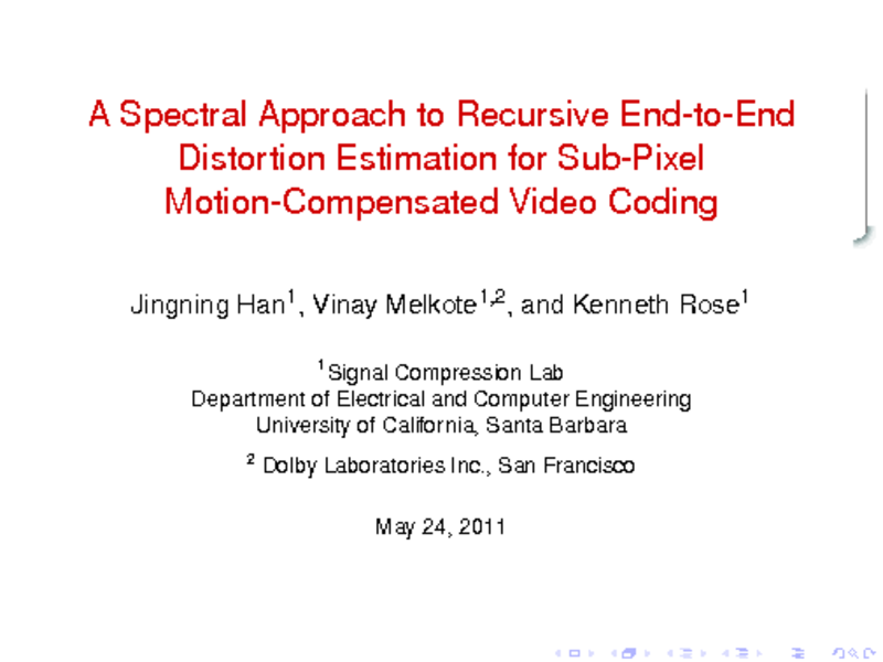 A SPECTRAL APPROACH TO RECURSIVE END-TO-END DISTORTION ESTIMATION FOR SUB-PIXEL MOTION-COMPENSATED VIDEO CODING