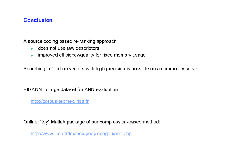 Hervé Jégou, INRIA, France; Romain Tavenard, University of Rennes 1, France; Matthijs Douze, INRIA, France; Laurent Amsaleg, CNRS, France