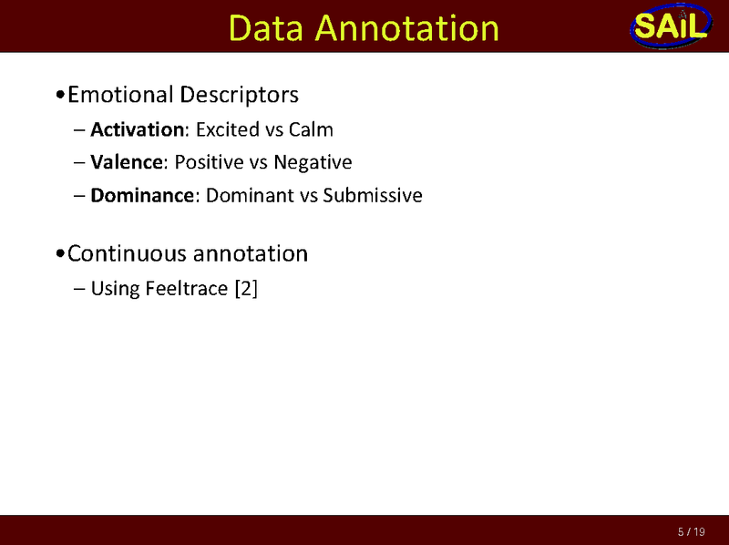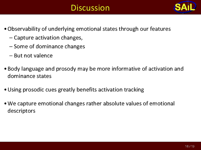 Přednášející: Angeliki Metallinou, Autoři: Angeliki Metallinou, Athanasios Katsamanis, University of Southern California, United States; Yun Wang, Carnegie Mellon University, United States; Shrikanth S. Narayanan, University of Southern California, United States