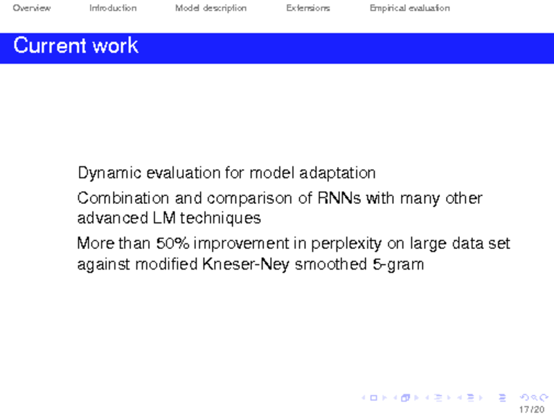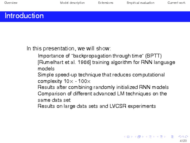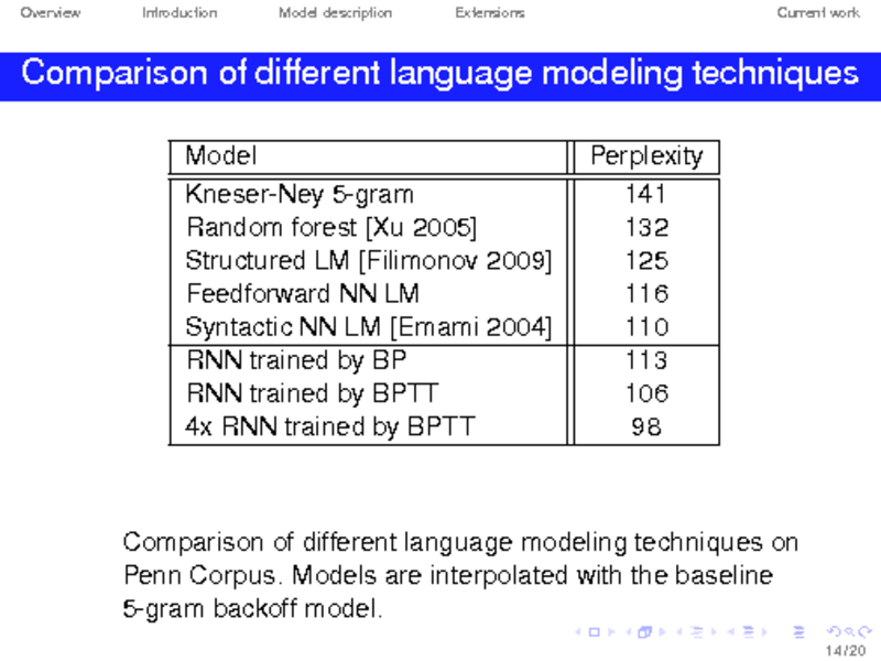 EXTENSIONS OF RECURRENT NEURAL NETWORK LANGUAGE MODEL