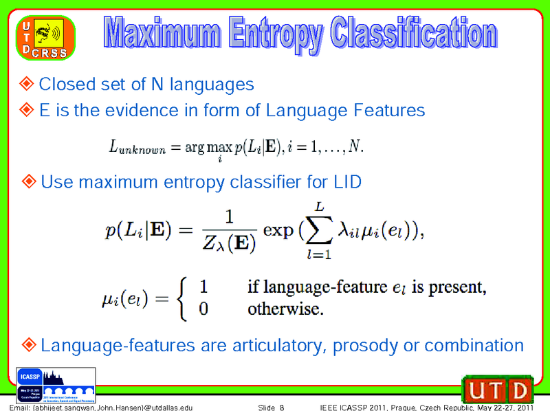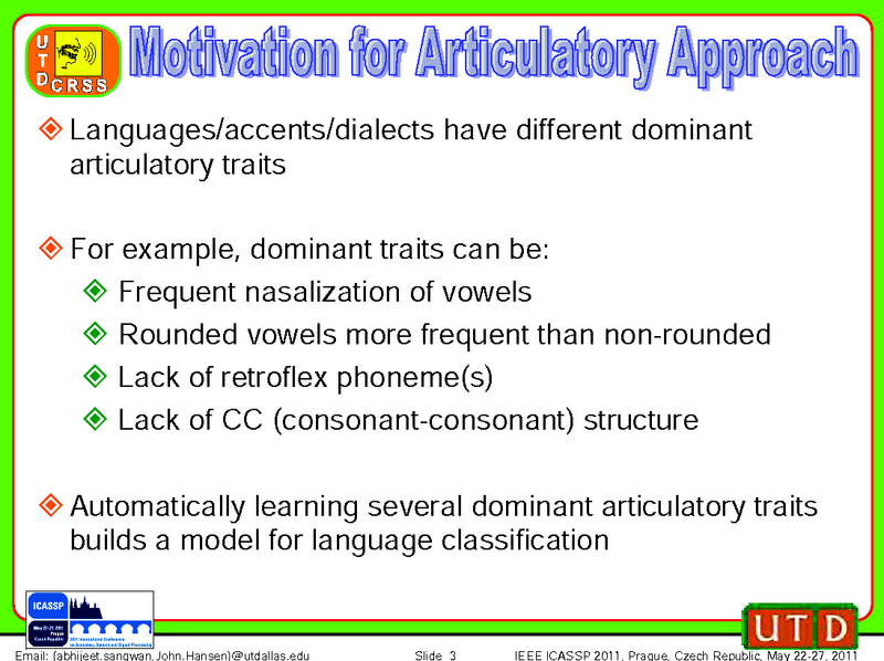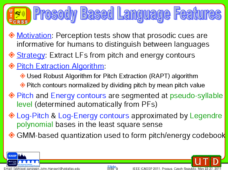 Abhijeet Sangwan, Mahnoosh Mehrabani, John Hansen, The University of Texas at Dallas, United States