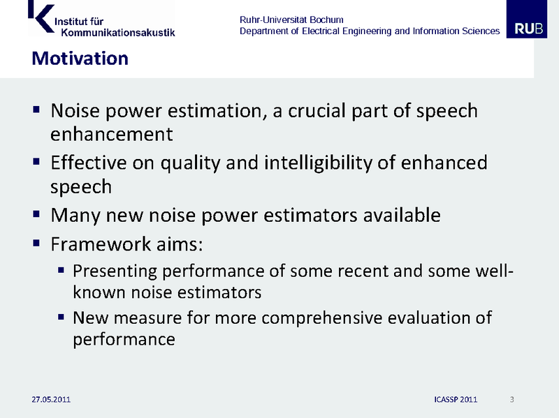 Jalal Taghia, Ruhr-Universität Bochum, Germany; Jalil Taghia, Nasser Mohammadiha, KTH - Royal Institute of Technology, Sweden; Jinqiu Sang, University of Southampton, United Kingdom; Vaclav Bouse, Siemens Audiological Engineering Group, Germany; Rainer Martin, Ruhr-Universität Bochum, Germany