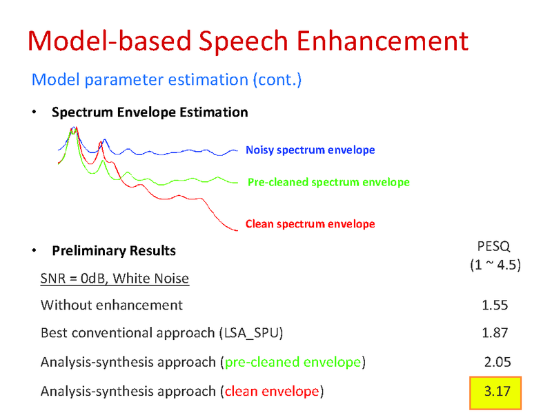 ANALYSIS-SYNTHESIS BASED SPEECH ENHANCEMENT WITH IMPROVED SPECTRUM ENVELOPE ESTIMATION BY TRACKING SPEECH DYNAMICS