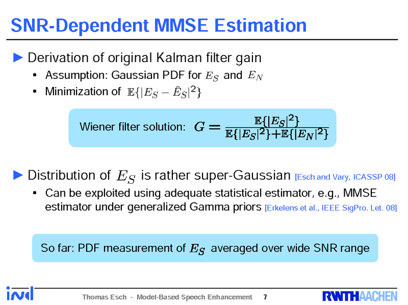 MODEL-BASED SPEECH ENHANCEMENT USING SNR DEPENDENT MMSE ESTIMATION