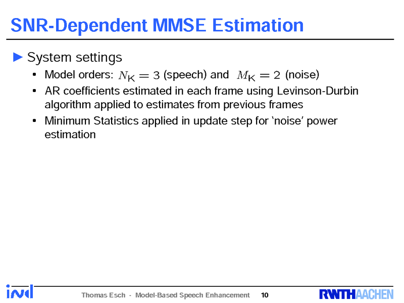 MODEL-BASED SPEECH ENHANCEMENT USING SNR DEPENDENT MMSE ESTIMATION