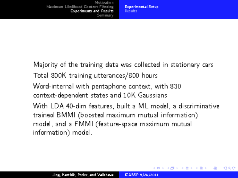 Jing Huang, IBM T.J. Watson Research Center, United States; Karthik Visweswariah, IBM India Research, India; Peder Olsen, Vaibhava Goel, IBM T.J. Watson Research Center, United States