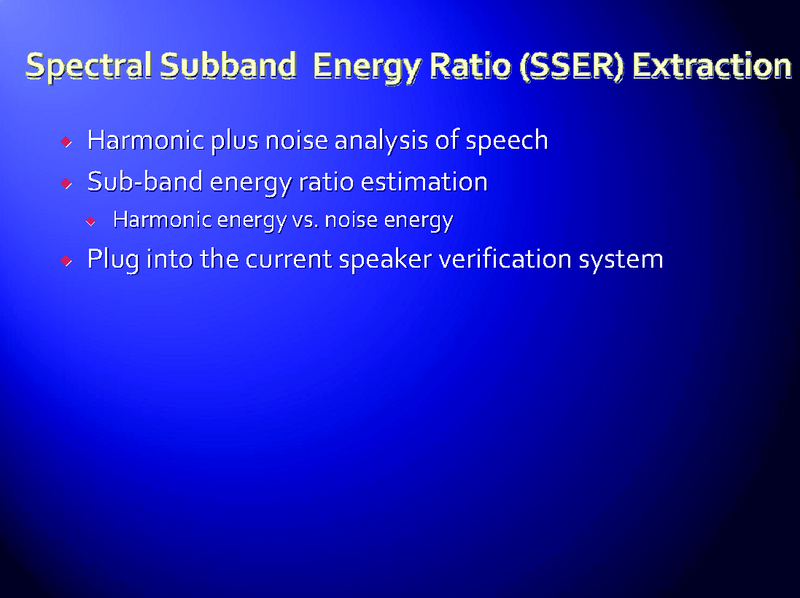 SPEAKER CHARACTERIZATION USING SPECTRAL SUBBAND ENERGY RATIO BASED ON HARMONIC PLUS NOISE MODEL