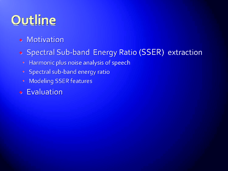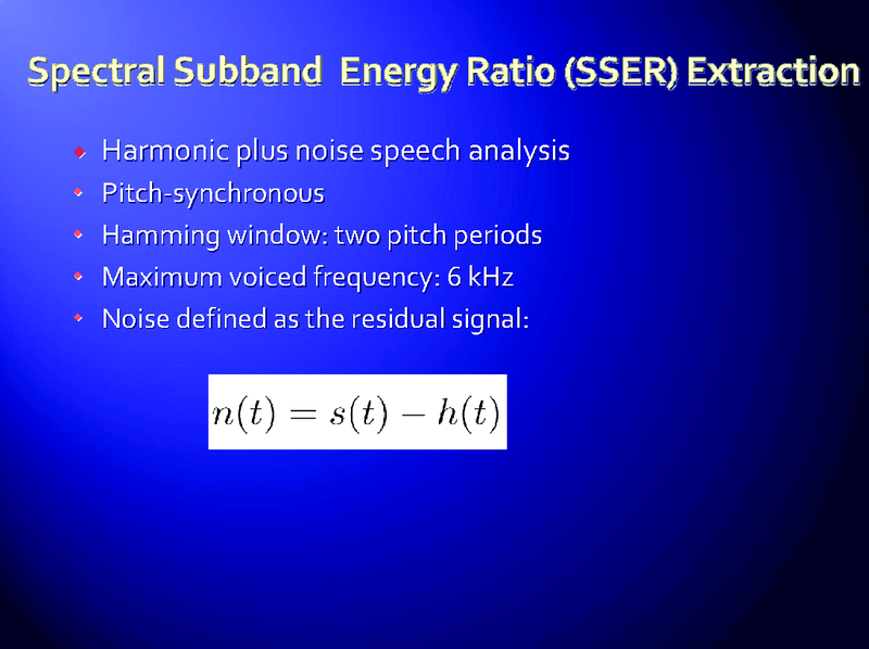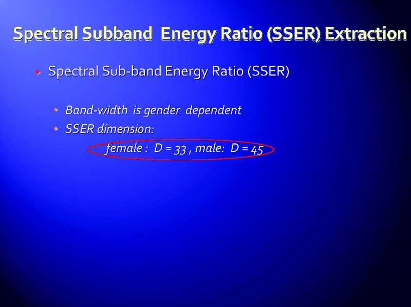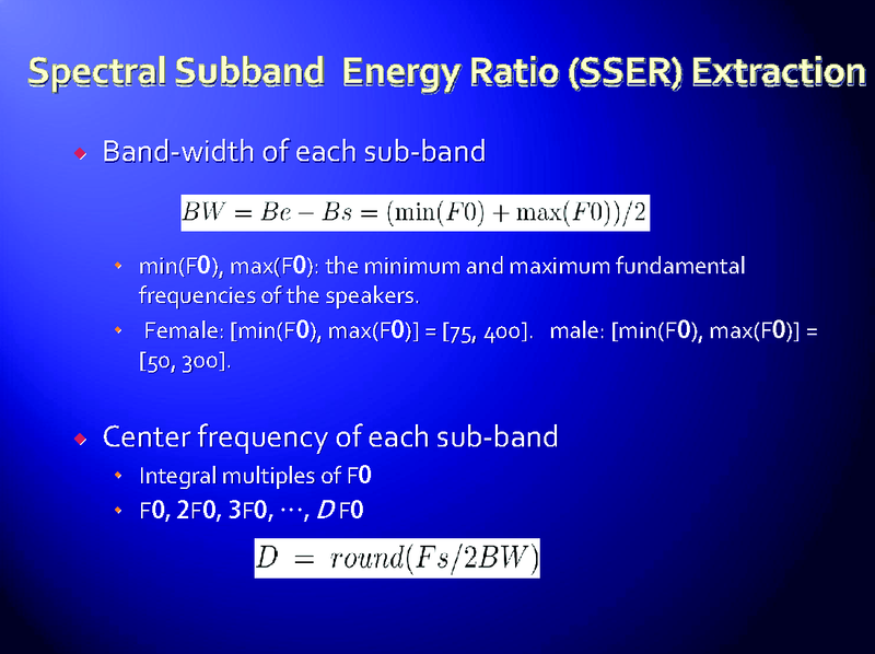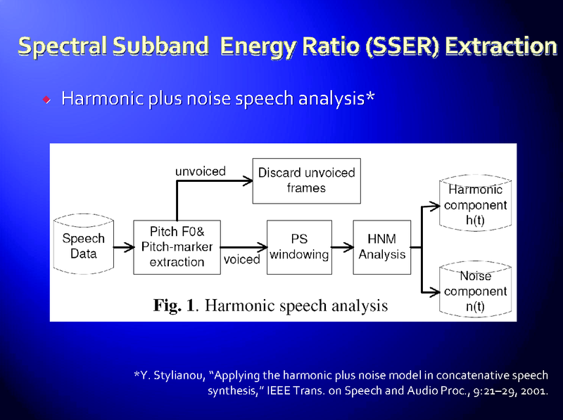 SPEAKER CHARACTERIZATION USING SPECTRAL SUBBAND ENERGY RATIO BASED ON HARMONIC PLUS NOISE MODEL