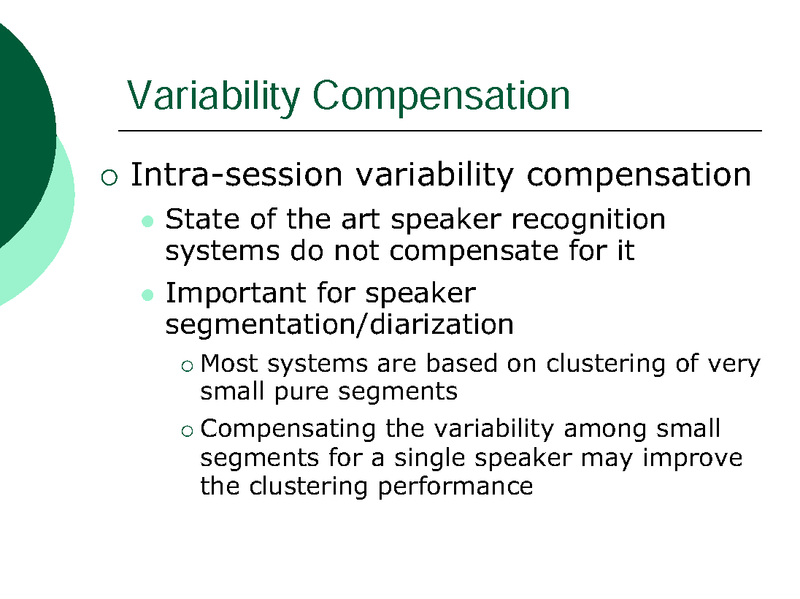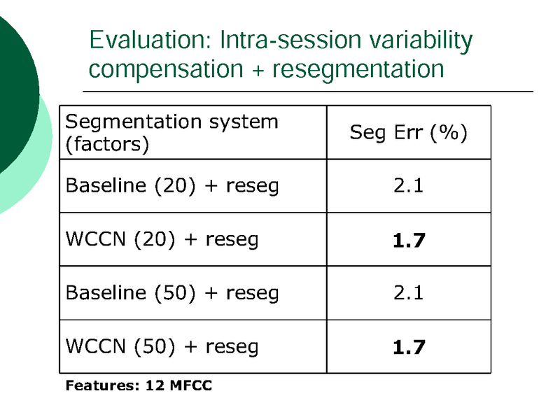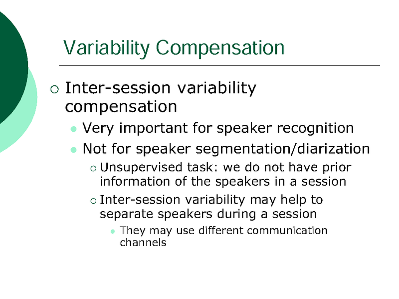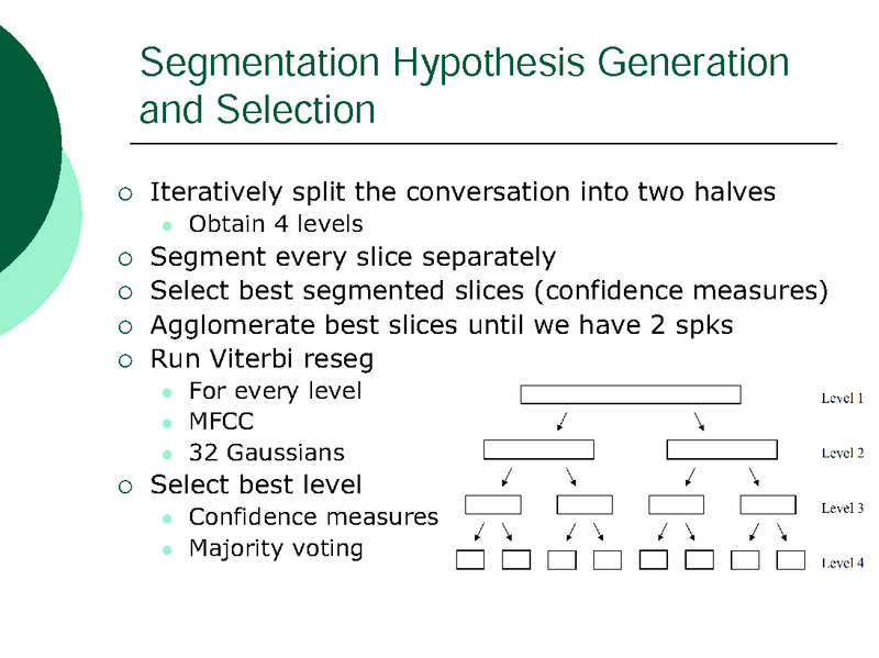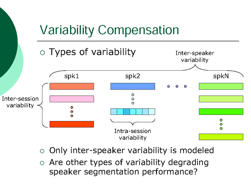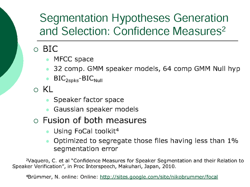 INTRA-SESSION VARIABILITY COMPENSATION AND A HYPOTHESIS GENERATION AND SELECTION STRATEGY FOR SPEAKER SEGMENTATION