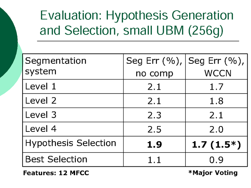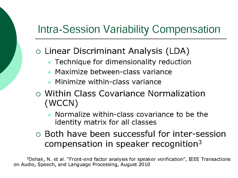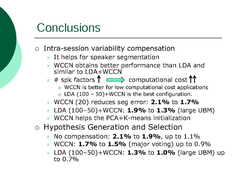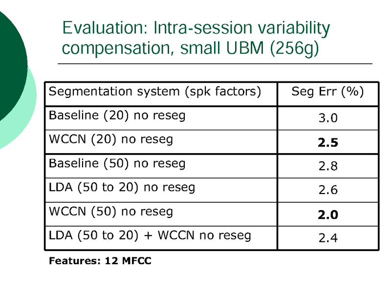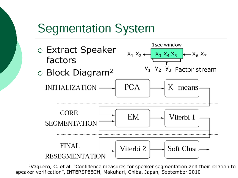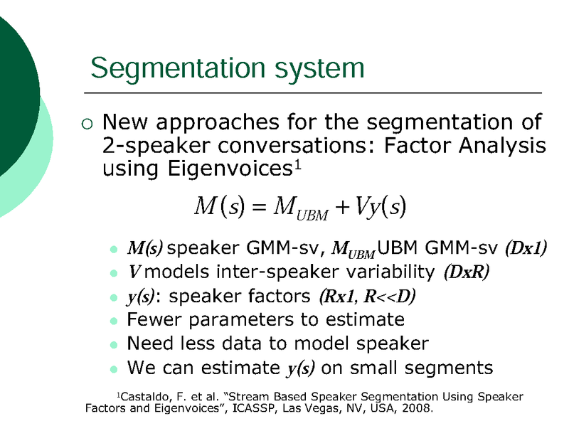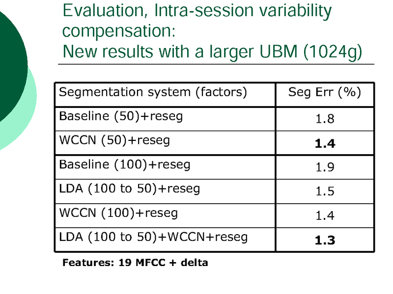 INTRA-SESSION VARIABILITY COMPENSATION AND A HYPOTHESIS GENERATION AND SELECTION STRATEGY FOR SPEAKER SEGMENTATION
