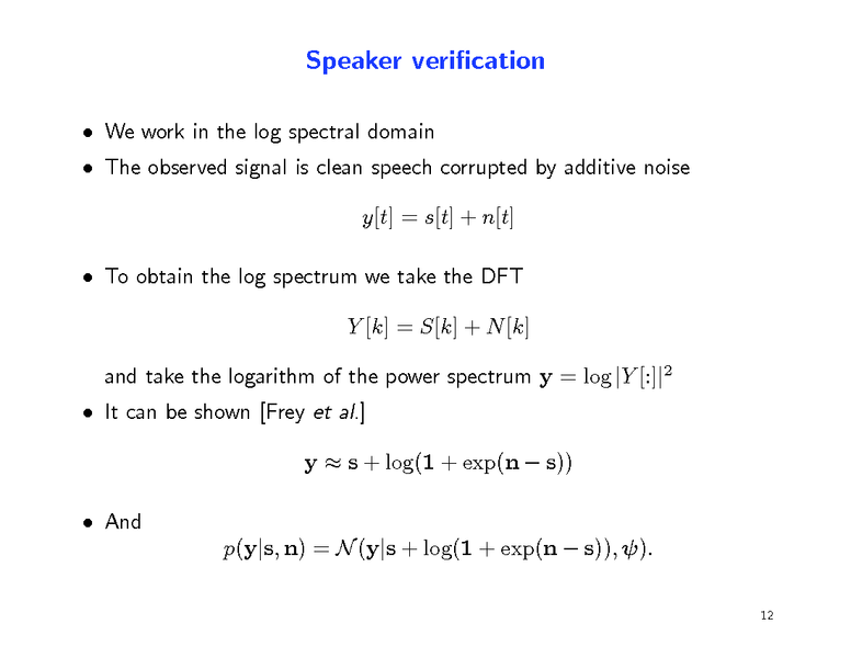 LOG SPECTRA ENHANCEMENT USING SPEAKER DEPENDENT PRIORS FOR SPEAKER VERIFICATION