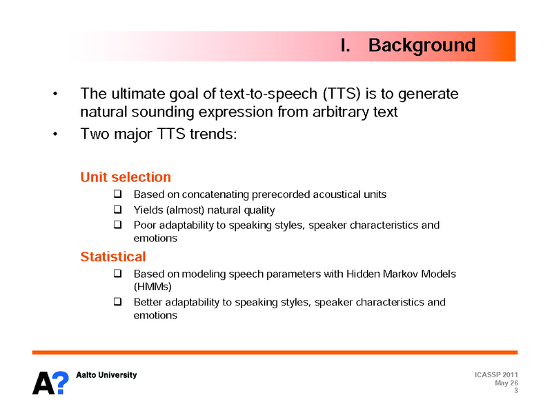 Presented by: Tuomo Raitio, Author(s): Tuomo Raitio, Aalto University, Finland; Antti Suni, University of Helsinki, Finland; Hannu Pulakka, Aalto University, Finland; Martti Vainio, University of Helsinki, Finland; Paavo Alku, Aalto University, Finland