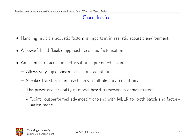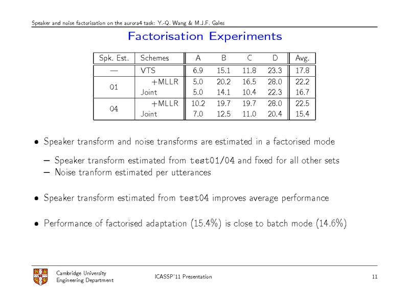 SPEAKER AND NOISE FACTORISATION ON THE AURORA4 TASK