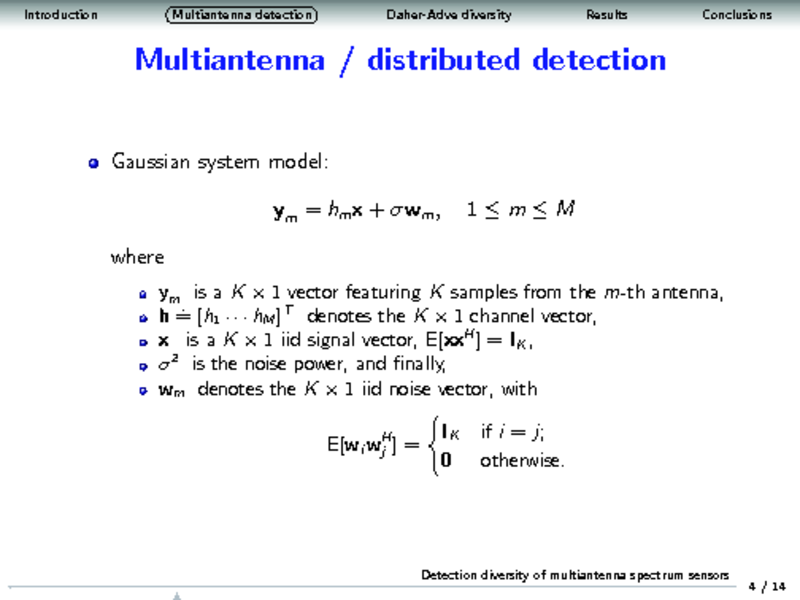 DETECTION DIVERSITY OF MULTIANTENNA SPECTRUM SENSORS