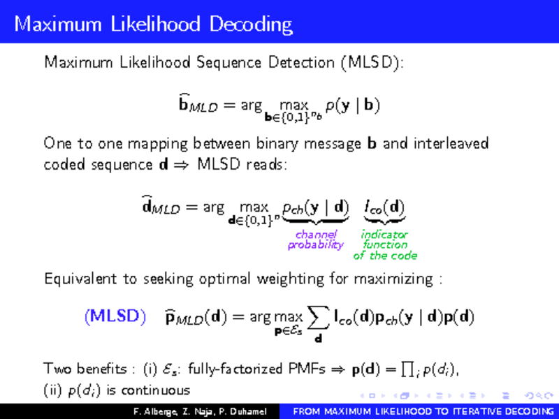FROM MAXIMUM LIKELIHOOD TO ITERATIVE DECODING