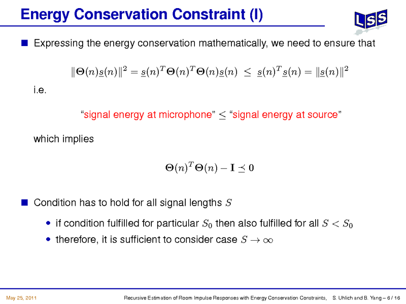 RECURSIVE ESTIMATION OF ROOM IMPULSE RESPONSES WITH ENERGY CONSERVATION CONSTRAINTS