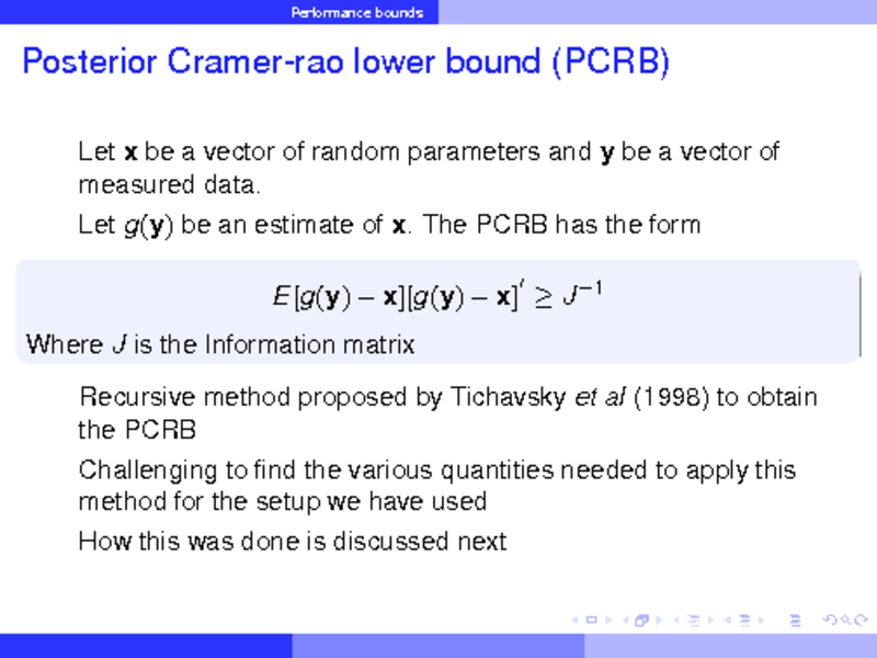 PERFORMANCE BOUNDS FOR TRACKING IN A MULTIPATH ENVIRONMENT