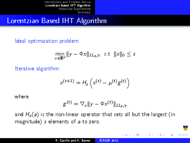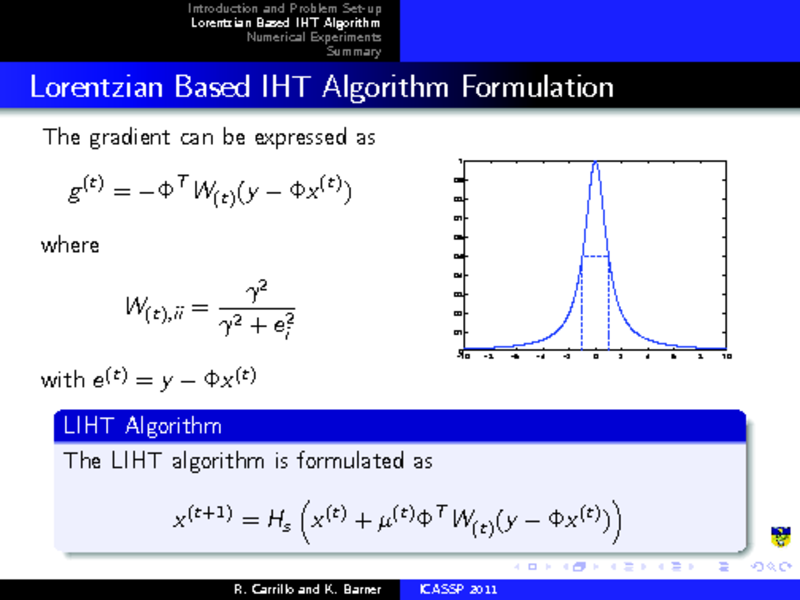 LORENTZIAN BASED ITERATIVE HARD THRESHOLDING FOR COMPRESSED SENSING