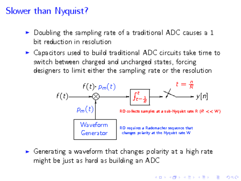 BEATING NYQUIST THROUGH CORRELATIONS: A CONSTRAINED RANDOM DEMODULATOR FOR SAMPLING OF SPARSE BANDLIMITED SIGNALS