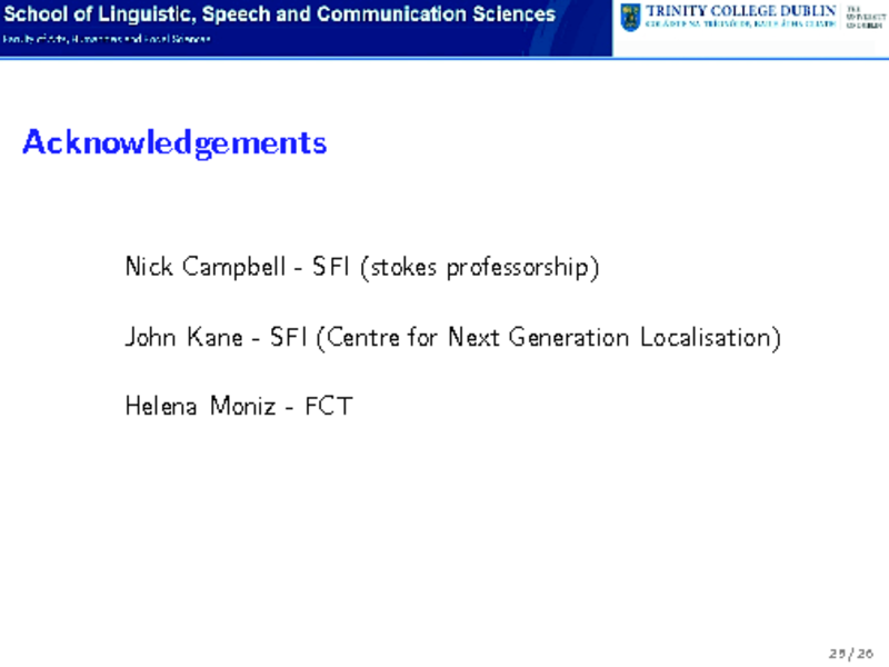 Nick Campbell, John Kane, University of Dublin, Ireland; Helena Moniz, FLUL/INESC-ID, Ireland