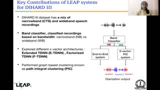 The LEAP submission for DIHARD-III challenge is described in this paper. The proposed system is composed of a speech bandwidth classifier, and diarization systems fine-tuned for narrowband and wideband speech separately. We use an end-to-end speaker diarization system for the narrowband conversational telephone speech recordings. For the wideband multi-speaker recordings, we use a neural embedding based clustering approach, similar to the baseline system. The embeddings are extracted from a time-delay neural network (called x-vectors) followed by the graph based path integral clustering (PIC) approach. The LEAP system showed 24% and 18% relative improvements for Track-1 and Track-2 respectively over the baseline system provided by the organizers. This paper describes the challenge submission, the post-evaluation analysis and improvements observed on the DIHARD-III dataset.