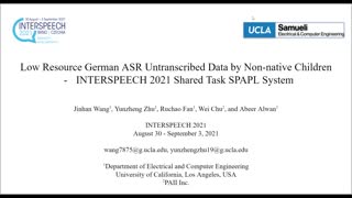 - Topics in ASR: Adaptation, transfer learning, children's speech, and low-resource settings (9)