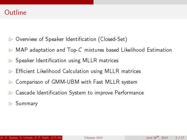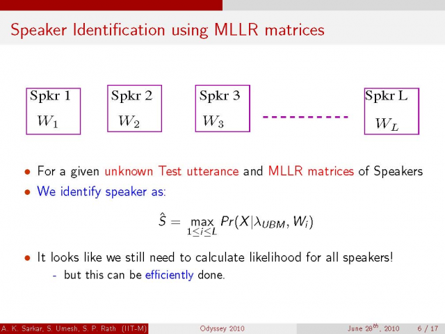 SESSION 1: Speaker recognition – LVCSR and high level features