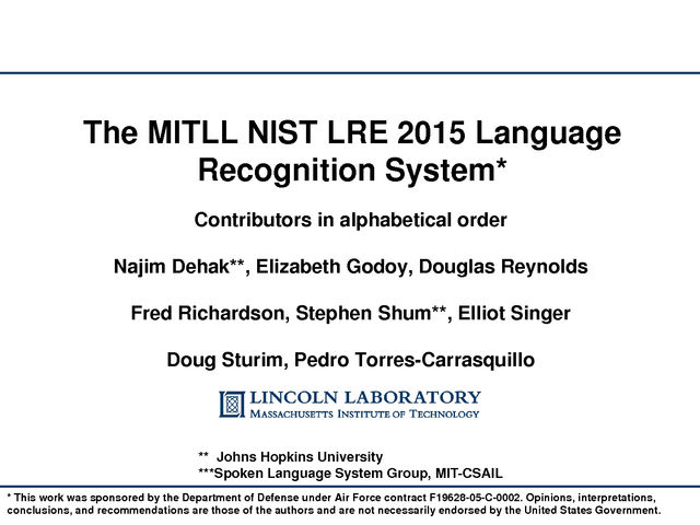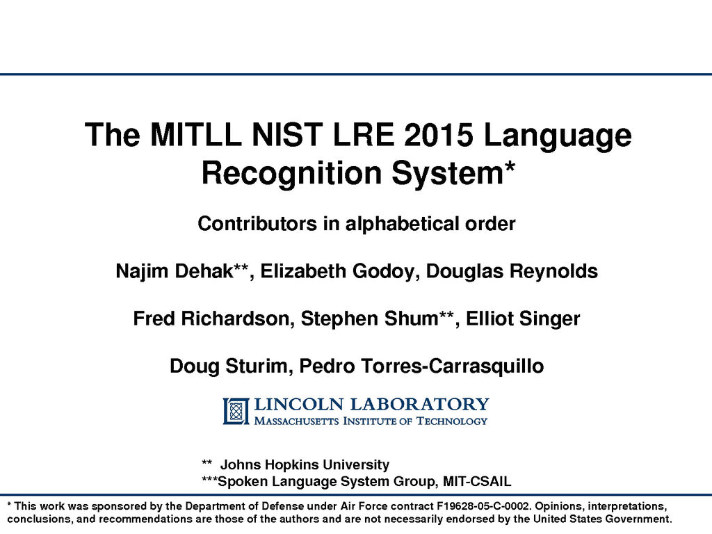 | Pedro Torres-Carrasquillo, Najim Dehak, Elizabeth Godoy, Douglas Reynolds, Fred Richardson, Stephen Shum, Elliot Singer, Douglas Sturim |